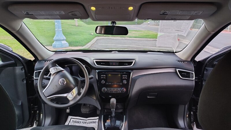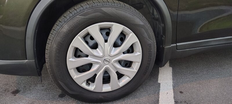 This 2016 Nissan Rogue S comes equipped with a reliable 2.5L I4 engine that delivers 170hp and 175ft. lbs. of torque. The factory default features include a spacious and comfortable black interior, a sleek black exterior, and impressive mileage of below 87,000 miles, averaging less than 9,000 miles per year. With fuel efficiency ratings of 26 MPG in the city and 33 MPG on the highway, this Rogue S is in excellent overall condition.